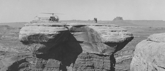 [Images: (top) “A helicopter makes access easy in southern Utah, circa early 1960s.” (bottom) “Scribing roads on a topographic map.” Courtesy of the USGS].