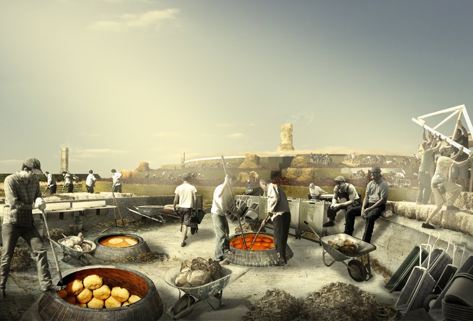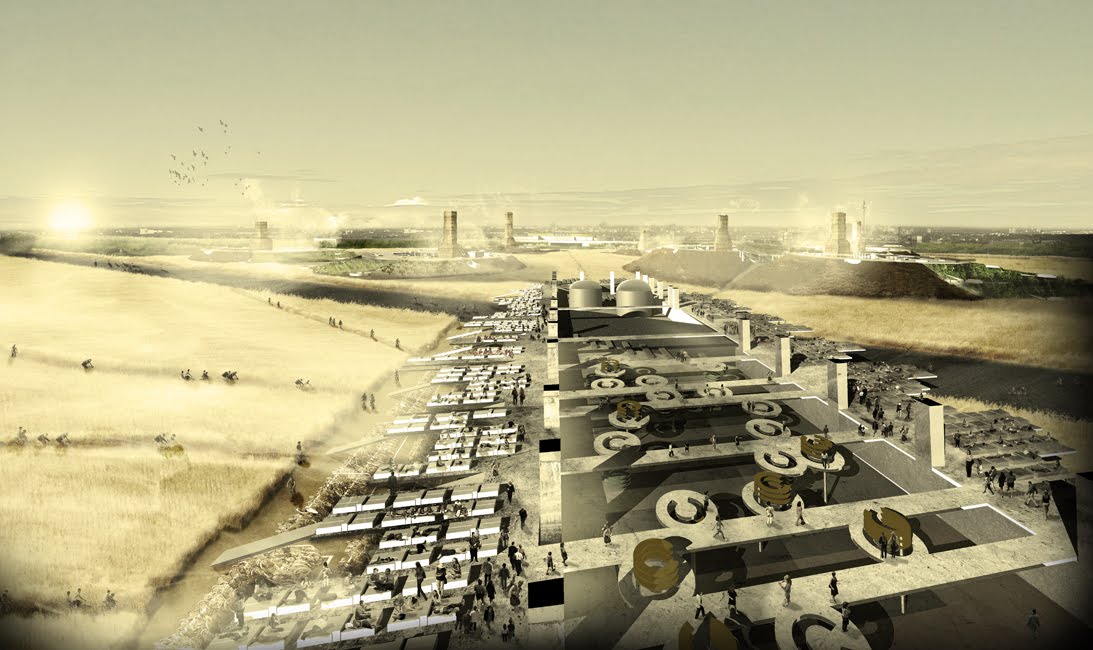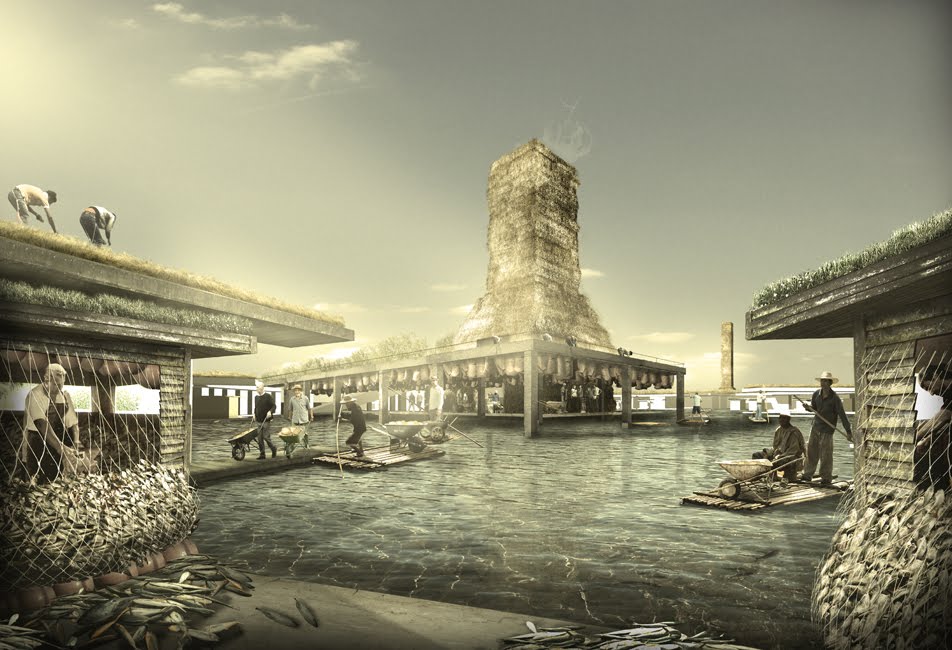 Geoff, I love your blog, and I really really enjoy diving into projects such as these, but I have to say that I'm skeptical that using the harsh light of quantitative analysis on either of these proposals would really be a good idea. The tempelhof project has some obvious sociopolitical issues (as well as some probable agricultural ones), but even the smaller-scale fish market seems to have more to do with the Bartlett aesthetic and a romantic fictionalization of urbanism and light industry than it does with a real proposal for social change. You've argued very eloquently in the past for a place for architectural fiction. Suggesting that such fiction should be held up to rational standards would, I fear, not be kind to the work presented.