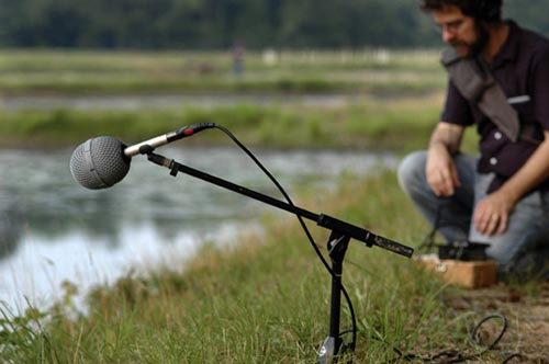 [Image: Sound artist Stephen Vitiello makes a field recording; photo by Turbulence].