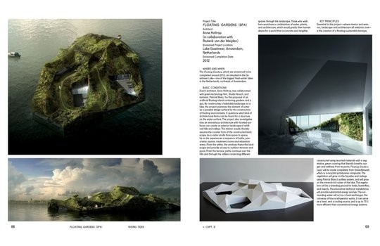 The book is more or less an apotheosis of the well-rendered and the unbuilt, not a sustained exploration of what constitutes social change, but its selection of projects—including concept art, student models, artificial mountains, flooded cities, houses on stilts, supergrids, verticalized landfills, private islands, living clocks, robotic agriculture, and more—is strong.