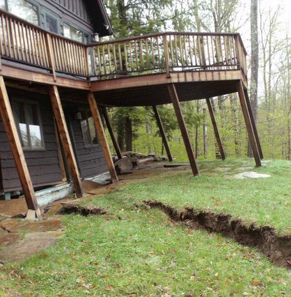 While they were gone, a carpenter had added a laundry room near their bedroom, and Jim noticed the bedroom door would no longer shut properly. Then Charity saw a tree outside their bedroom window was tilting at a weird angle and a crack in the ground near a place under the deck where she kept gardening equipment.