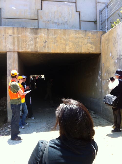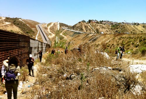 Architect and designer Quilian Riano was on hand for the crossing, and these are his photographs reproduced here. By way of email, Riano described the physical terrain where they crossed beneath and through the border, remarking that the hydrological status of the land there “really makes you think about how arbitrary borders are.”
