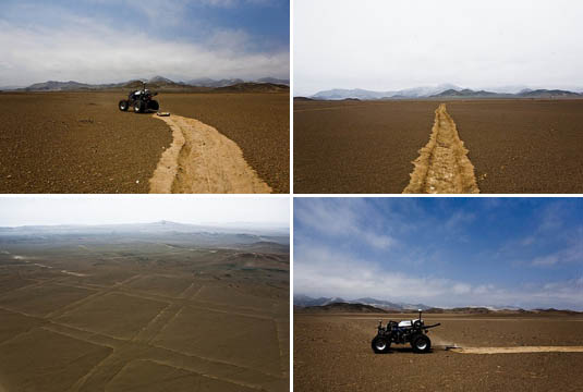 we make money not art has posted a short interview with artist Rodrigo Derteano, creator of a project called Ciudad Nasca/Nazca City—a reference to the famed Nazca Lines—in which a semi-autonomous robot tractor has carved a full-scale map of an imaginary city into the Peruvian desert. Watch the video: