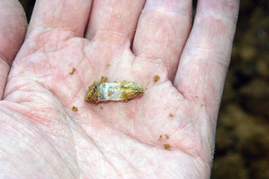 [Image: The “plastic” extruded by New England’s Colletes inaequalis bees; photo by Debbie Chachra].