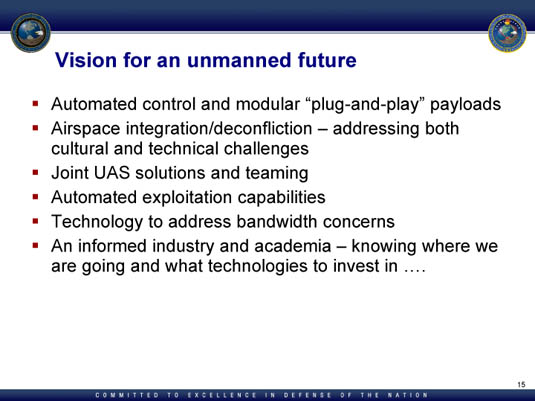 [Images: From an October 2009 presentation by Major General Blair Hansen to the U.S. Strategic Command and Defense Intelligence Agency].