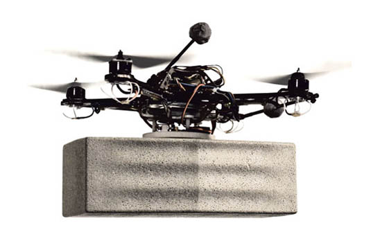 I think that this idea is incredible because of its simplicity. You can "easily" program these inexpensive flying machines to collect and deliver the bricks within very accurate spatial coordinates and within a certain wanted geometrical outcome.