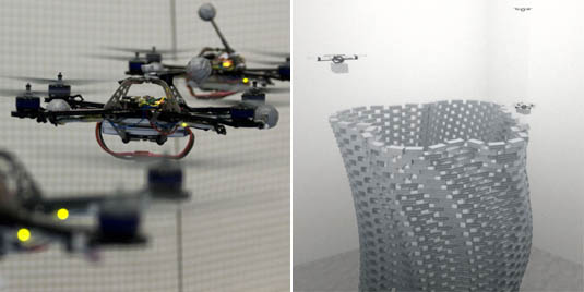 Semi-autonomous flying robots programmed by Swiss architects Gramazio & Kohler “will lift, transport and assemble 1500 polystyrene foam bricks” next month—starting 2 December 2011—at the FRAC Center in France. The result, they hope, will be a “3.5 meter wide structure.”