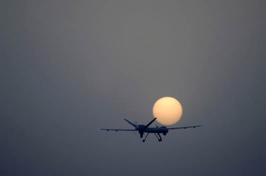 [Images: “An MQ-9 Reaper remotely piloted aircraft takes off July 17 from Joint Base Balad, Iraq. The Reaper can loiter over battlefields or targets for hours at a time without refueling and carries up to 3,750 pounds of laser-guided munitions, giving ground commanders unprecedented situational awareness and the ability to bring the right amount of force to bear on a target. (U.S. Air Force photo/Tech. Sgt. Richard Lisum)”].