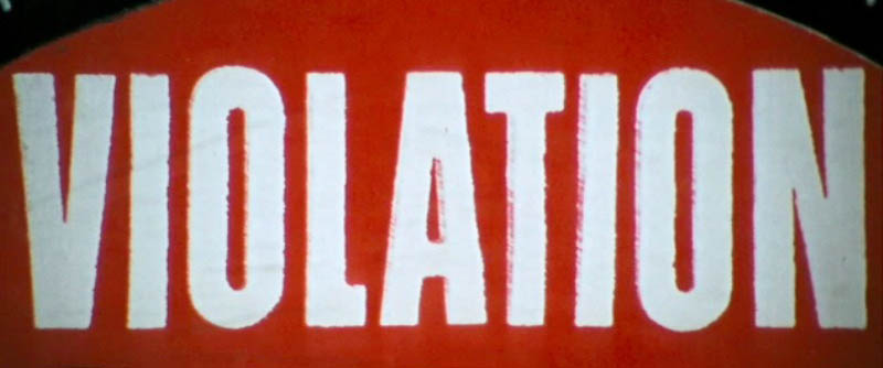 The film tells the story of Luke Jackson, imprisoned for “maliciously destroying municipal property” by cutting the heads off parking meters. The very first word and image of the film is VIOLATION.