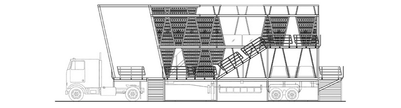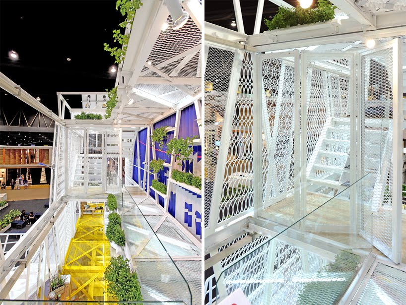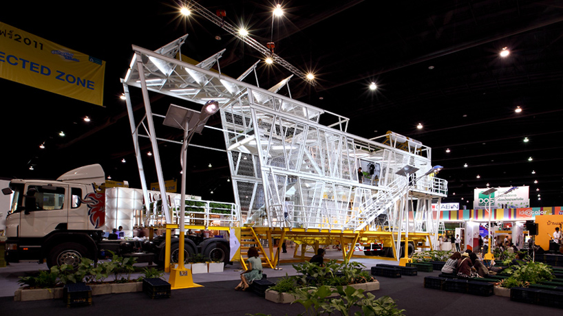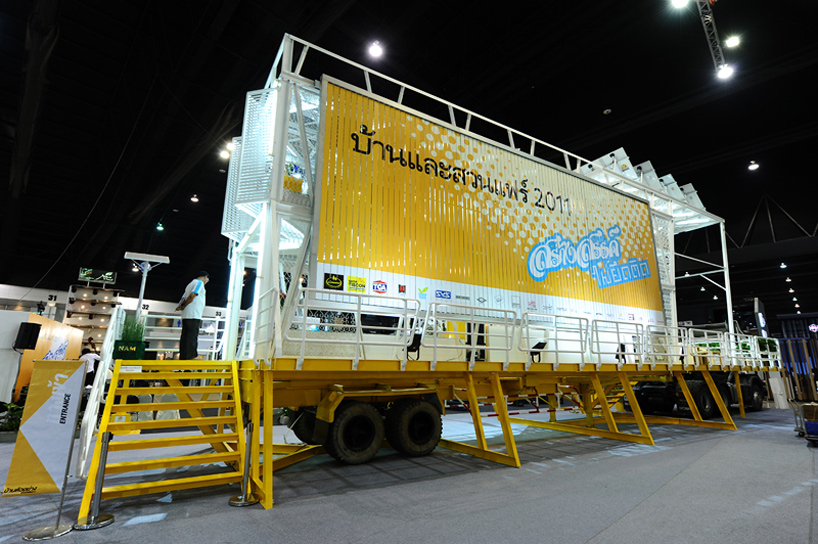 Apostrophy’s house was installed and debuted at a fair in Bangkok, serving as a demonstration project, or proof of concept; it is transportable by truck, so, in theory, it can move between urban sites, being reattached to different masts in whole other neighborhoods and cities, while one of its facades remains operational as a revenue-generator for residents, displaying ads or other media content (it could also be a kind of live-in outdoor cinema for traffic jams).