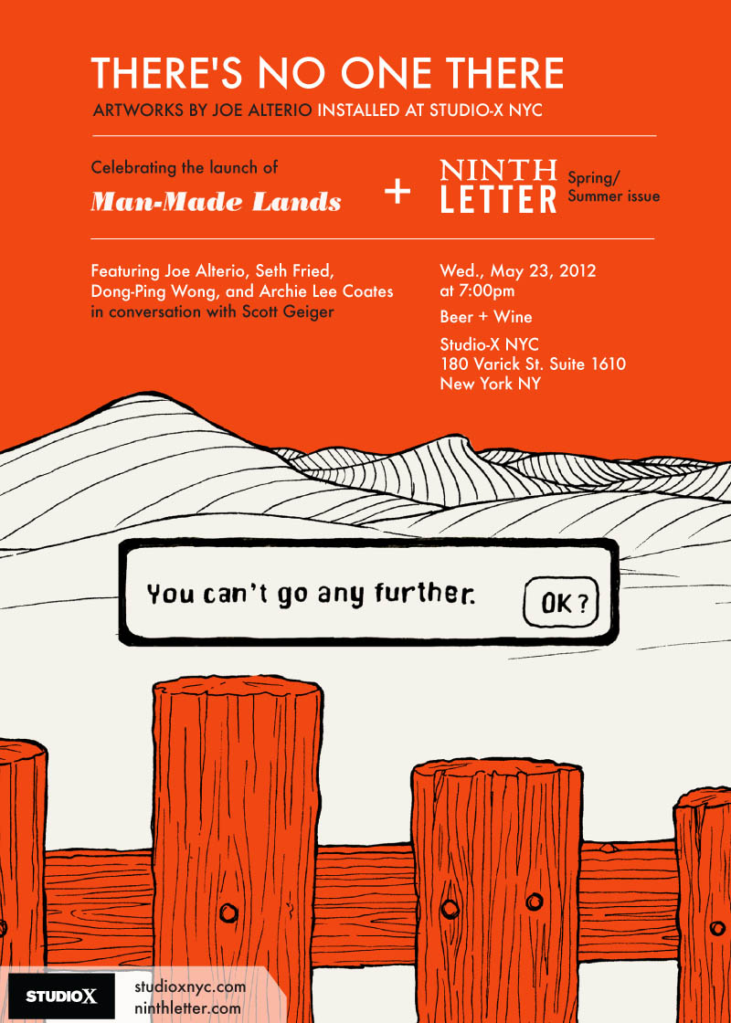 New Yorkers, stop by Studio-X NYC tonight, Wednesday, May 23rd, at 7pm for free drinks and the launch of Man-Made Lands, “a collection of seven stories and five real architectural and landscape proposals for cities around the world,” the first chapbook from Ninth Letter.