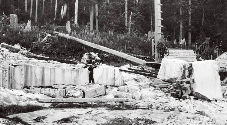 [Image: Vermont Marble Company quarry, Tokeen, Alaska; circa 1912. Courtesy of the U.S. Geological Survey].