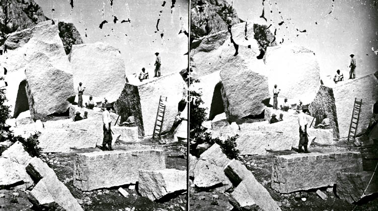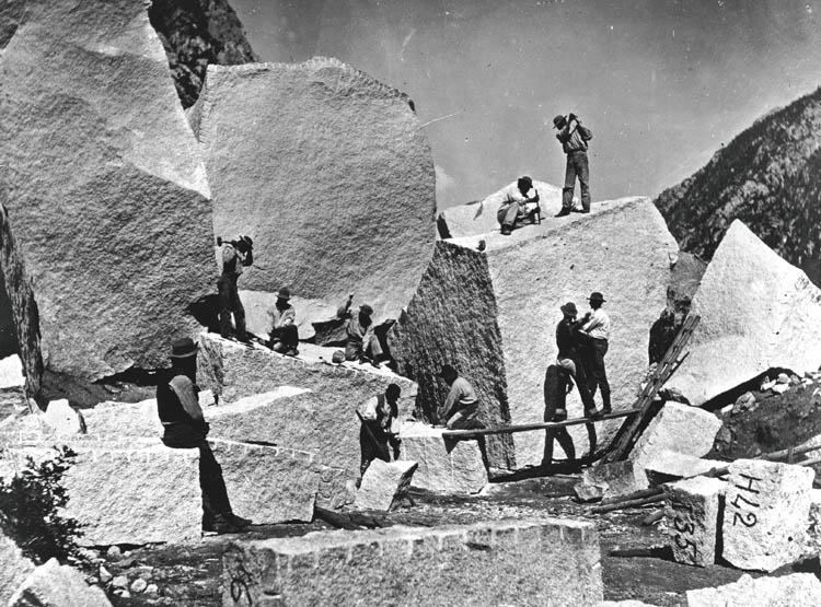 [Image: Quarrying rock for the Mormon Tabernacle, Utah; 1872. Courtesy of the U.S. Geological Survey].