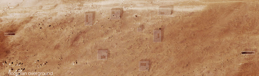 Inspired by the many hiking trips that the two students from China have enjoyed during their studies at ETHZ, the entry is based on the idea of a hypothetical mudflow in the Swiss Alps burying a village. The project works with columns of transparent thermoplastic planted into the earth as a metaphorical representation of the former village. Sunlight is being transmitted through the columns into the subterranean space, where they illuminate a poetic memory of the former rooms in the buried houses.