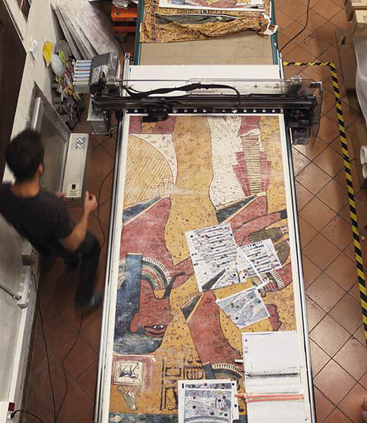 [Image: Routing tomb details into polyurethane, courtesy of the Factum Foundation].