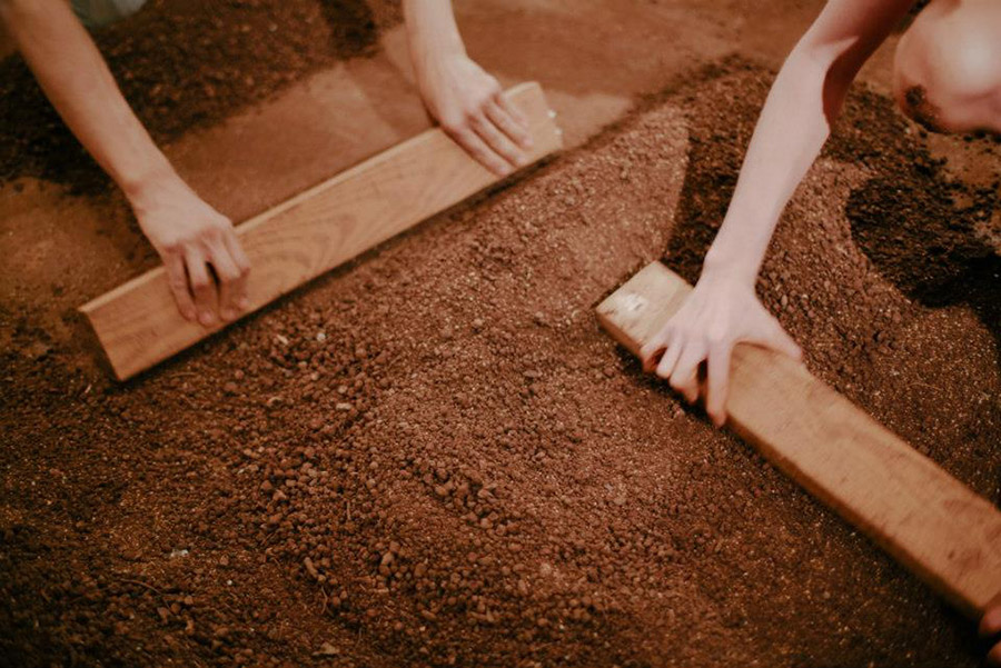 The ii gallery in Honolulu, Hawai‘i, is currently showing architect Sean Connelly’s installation A Small Area of Land (Kaka‘ako Earth Room), a “temporary earth sculpture” made from “32,000 pounds of volcanic soil and coral sand.”