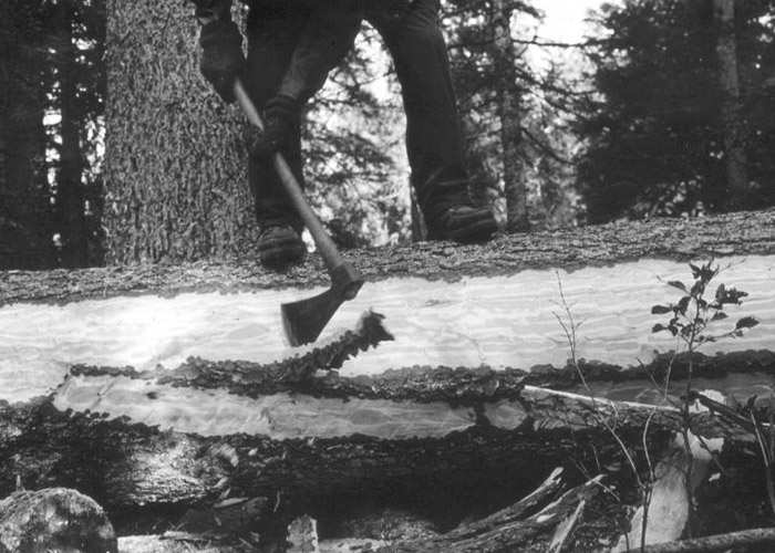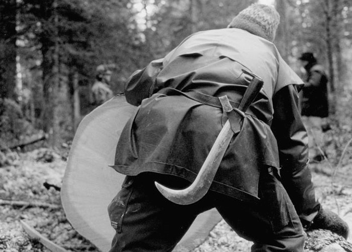 [Image: Lorenzo Pellegrini shapes planks for violins in Switzerland’s Risoud Forest; photo via JMC].