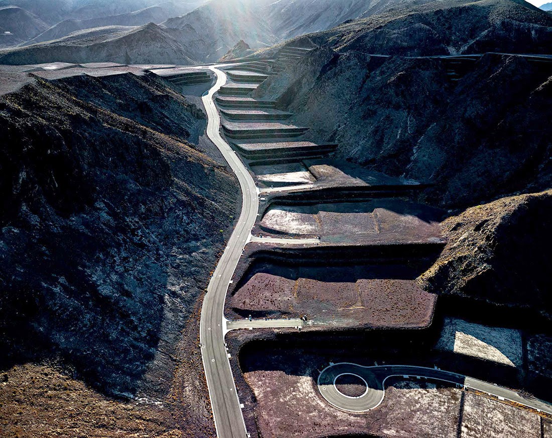 [Image: “Ascaya Boulevard looking south up Black Mountain, morning, Henderson, Nevada,” 2012; from Black Mountain by Michael Light].