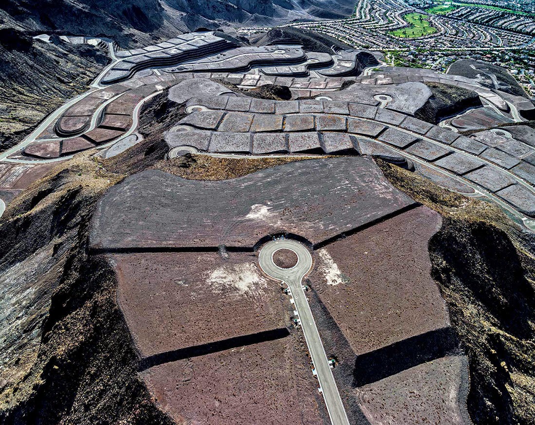 [Image: “Unbuilt Ascaya lots and cul-de-sac looking west, Henderson, Nevada,” 2011; from Black Mountain by Michael Light].