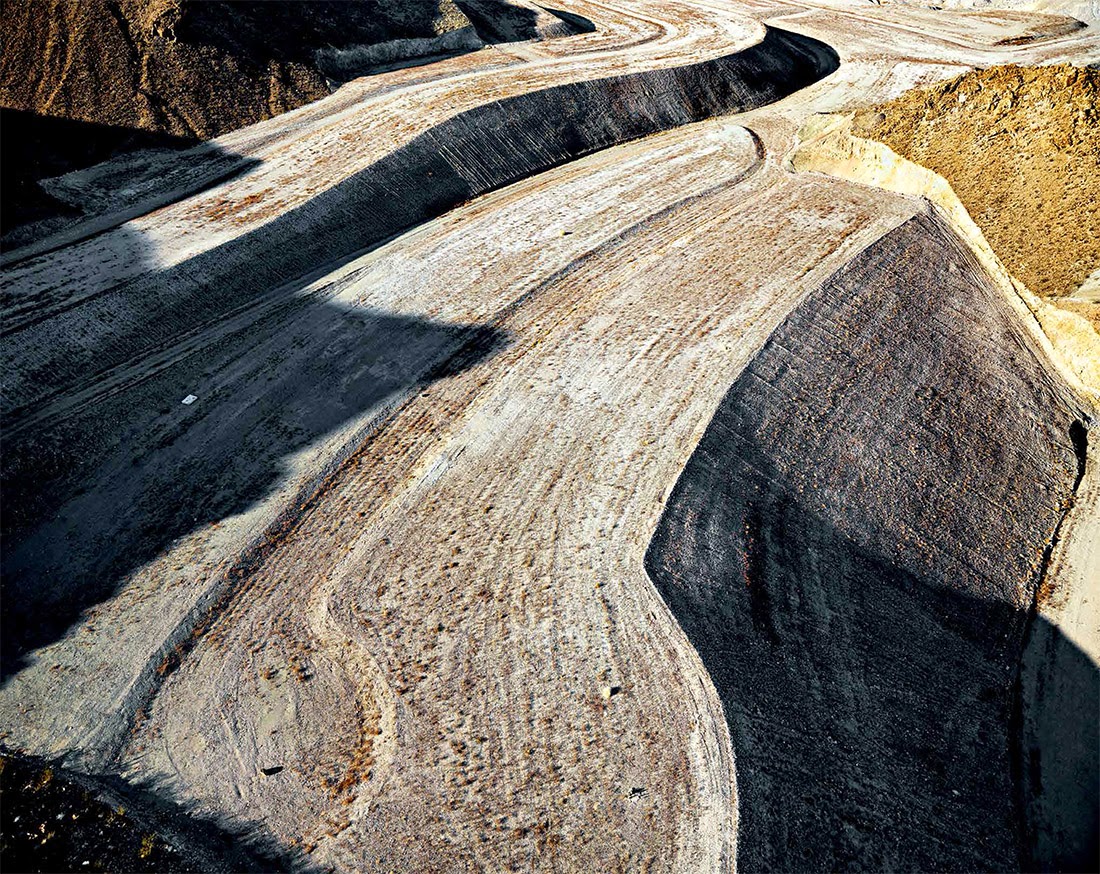 The resulting landforms—huge berms, winding streets, flat-capped foundation piles, and carefully graded podiums of dirt and gravel—look at times like hard drive platters, chocolate bars, or even the tailings piles of a colossal mine.