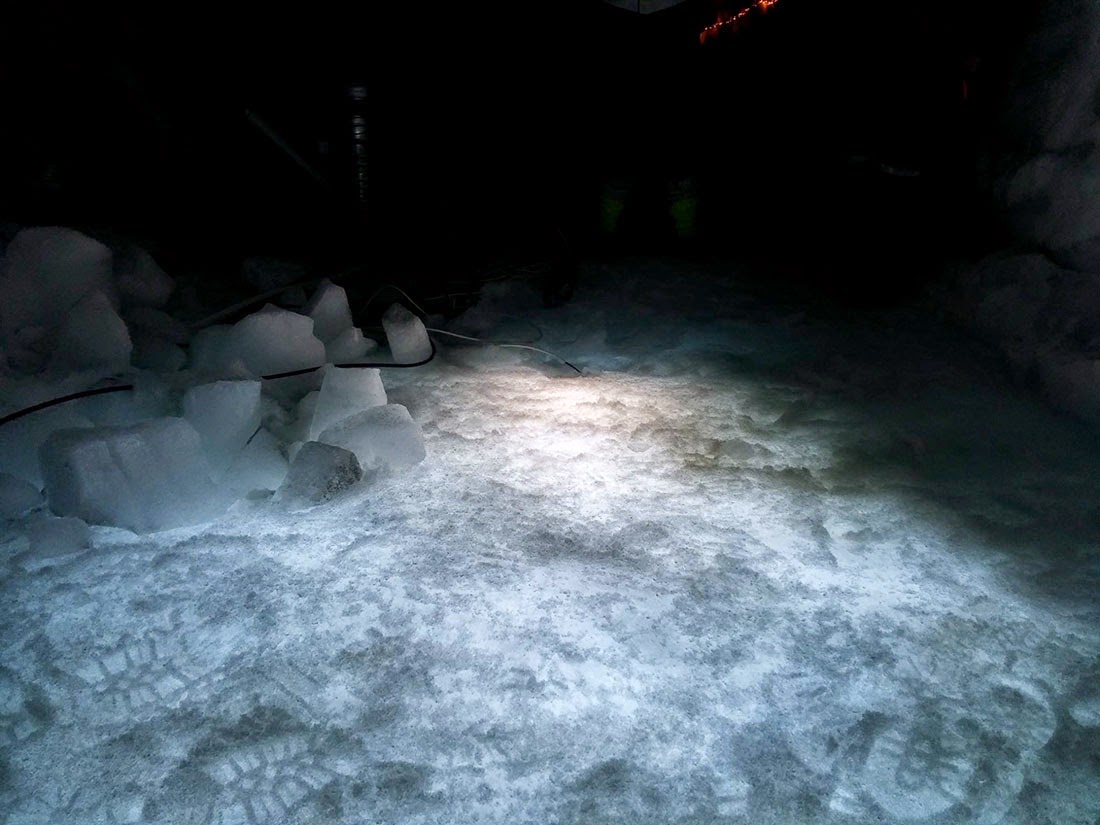 —with the truly awesome effect that nearby rooms will seem to glow through the ice walls, revealing themselves as illuminated shapes, even appearing to shine through the floors and ceilings.