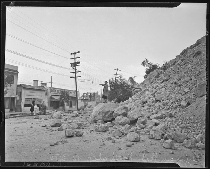 “For a few days in late November 1937,” Masters writes, “it was the Southland’s greatest attraction—a landslide in slow motion, 1.5 million tons of an Elysian Park hillside creeping toward the Los Angeles River bed.”