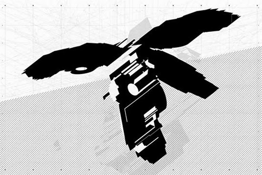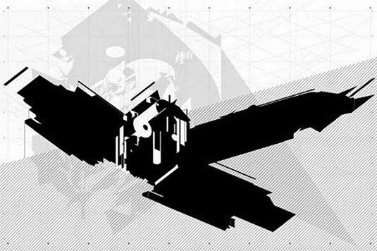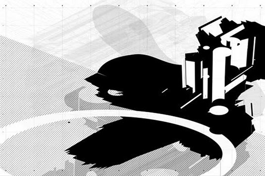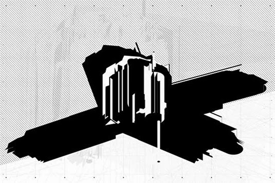 Is it a neoclassical temple casting shadows in all directions at once, or some other explosion of architectural representation to suggest new ways of drawing space?