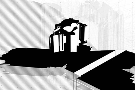 This statement combined with the aesthetic of the game itself also brought to mind an undergraduate thesis project that we looked at last week, by Anthony Morey at SCI-Arc, where a rotating, monochromatic exploration of architectural space plays havoc with your sense of volume, shadow, and massing.