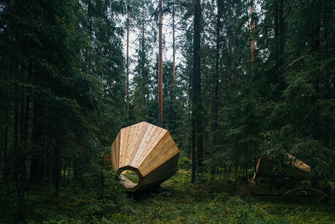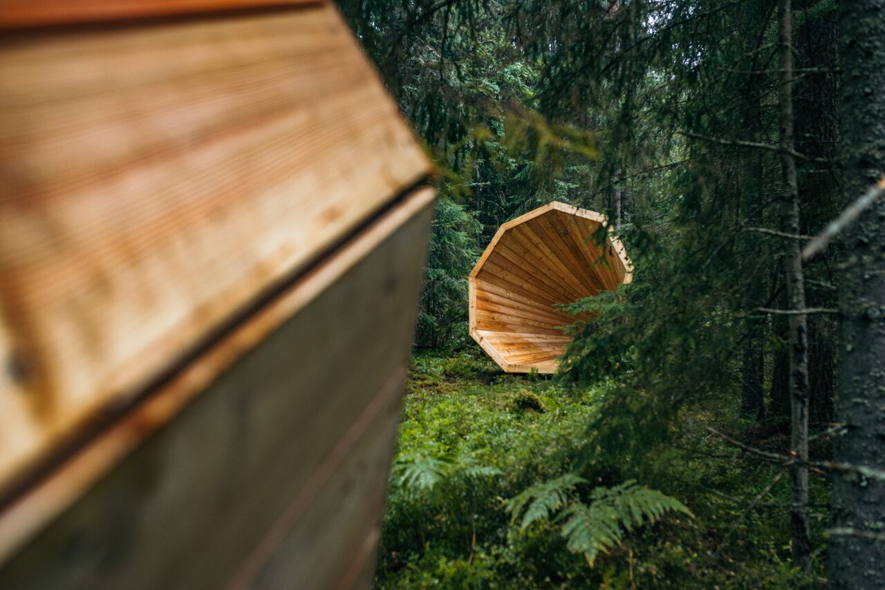 These architectural objects are “gigantic wooden megaphones” for the forest, part of an acoustic installation in Estonia’s gorgeous Pähni Nature Centre for amplifying the sounds of the landscape.