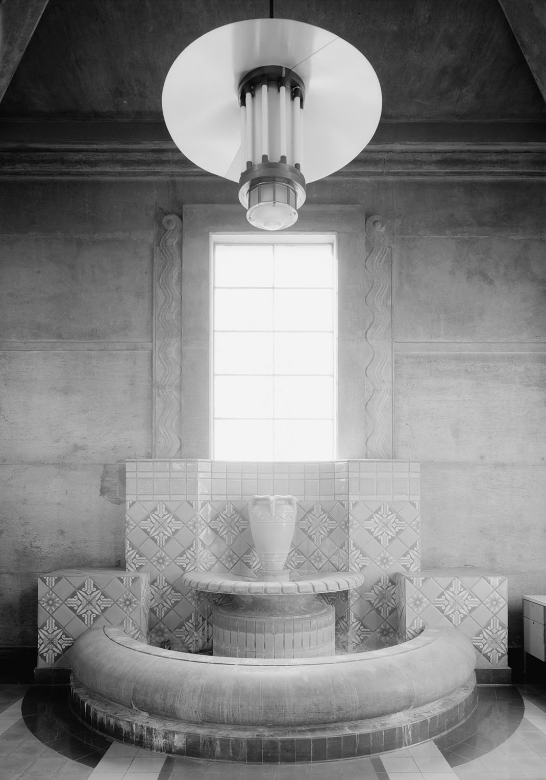 In any case, continuing the vaguely sci-fi feel, there is even a tiled fountain—a Mediterranean concession to the building’s role in water filtration—on one wall, emphasized by these amazing lighting features, yet it looks more like a film set, both ancient and futuristic.