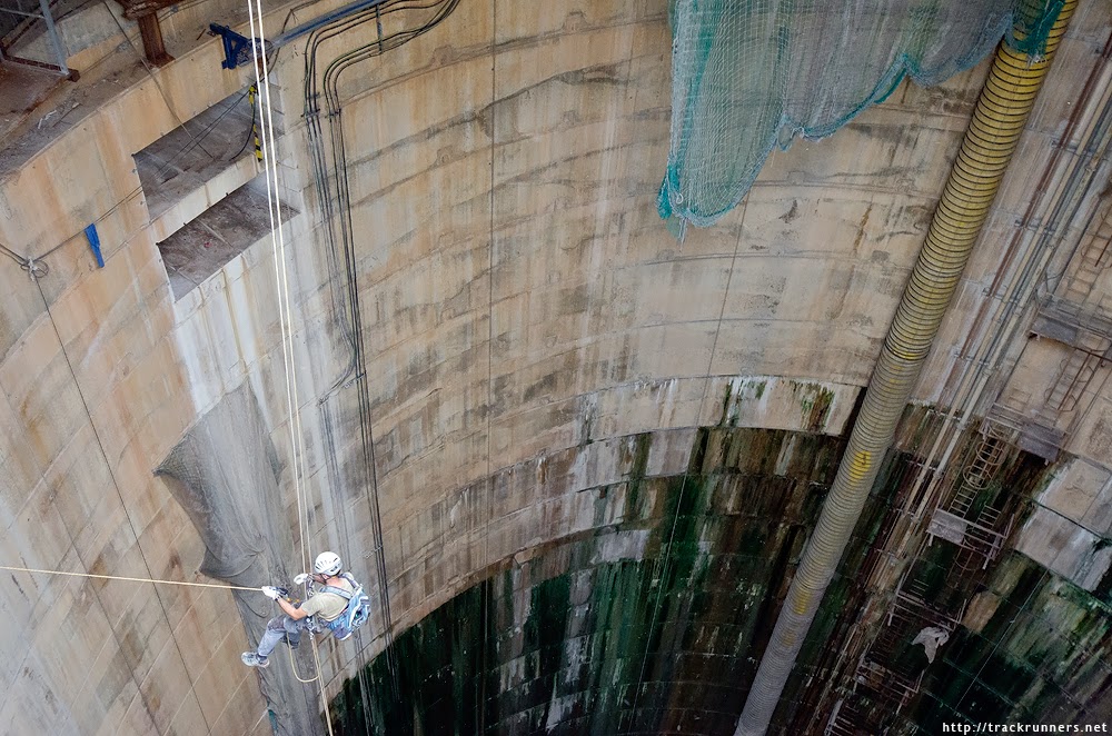 It’s like scaling Mt. Everest in reverse—“descending black ropes,” in their words—swinging ever closer to the entrance to the tunnels, their headlamps and cameras at the ready.