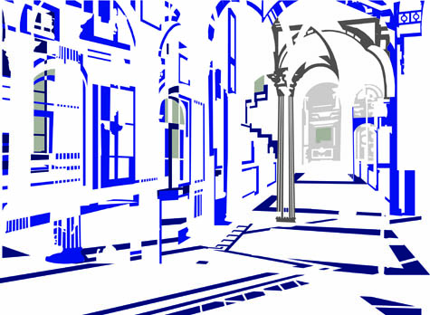 As you walk through the building, Johan explained, you would pass through a series of “choreographed viewpoints,” or visual positions at which the spaces around you would shift. Here you would feel as if you are inside one particular building (a Museum of the Constitution, Johan suggests); there, even if only steps away, you would feel as if you were inside another building altogether (a Court of Law, for instance).