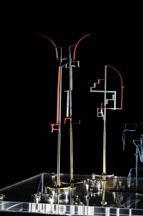 The resulting model of the project was thus more like a small machine, moving between two states of being. In one state, it was simply a pile of loose wire frames and disconnected vaults; in the other, a battery-powered act of reanimation has brought these apparently discarded parts whirling back to life, forming a functional building space.