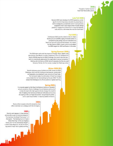 What we’re really doing is changing the conversation. Through changing – or expanding – the conversation, we’ve been able to issue the 2030 Challenge. We would not have been able to issue that had we not changed the conversation. So we issued the Challenge, which was picked up by the profession and then by the cities, and that was absolutely critical.