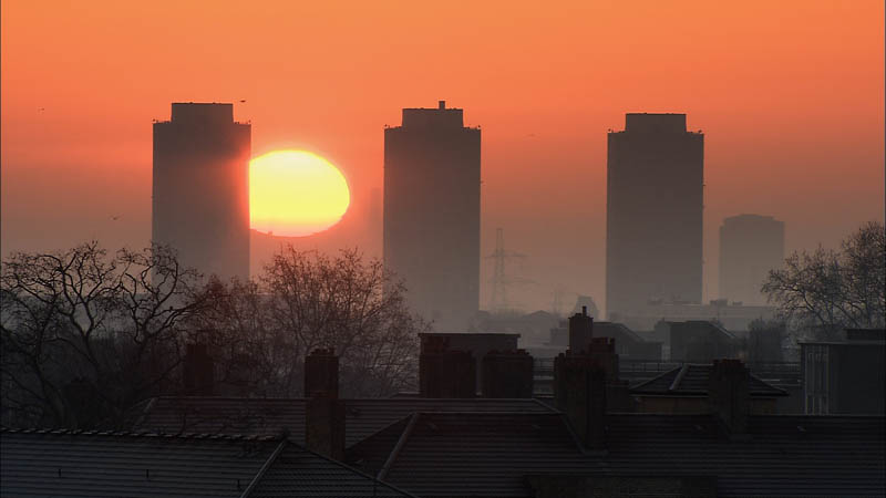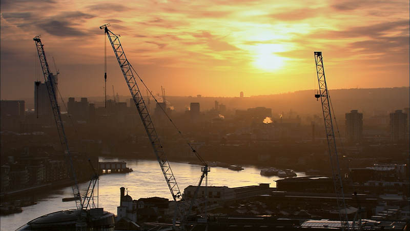 But the movie takes a more architectural turn here, increasingly focused on buildings and cities, on archaeological sites and ruins. We see residential towers in Ukraine, for example, ripped open by Russian missiles and drone-bombs, and then earthquake-damaged apartments undergoing demolition and clearance, followed by landfill-dumping operations so large they look like attempts at terraforming.