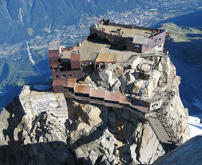 Two photos of architecture on the Aiguille du Midi in Chamonix, France; uncredited; found via Google Image Search.
