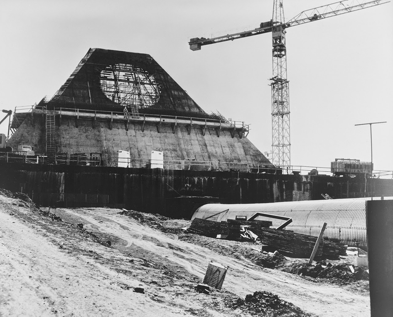 This is how modern-day pyramids are made: huge budgets and ziggurats of rebar, as tiny figures wearing hardhats scramble around amidst gargantuan geometric forms, checking diagrams against reality and trying not to think of the nuclear war this structure was being built to track.