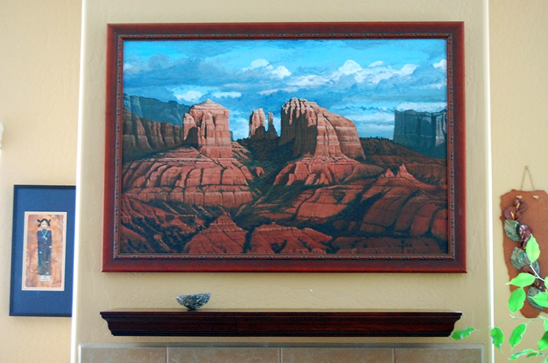Dee Blakey, Ron’s Wife: I think the other reason that he can do what he does is that he paints. That’s one of his paintings over there. [gestures above fireplace]