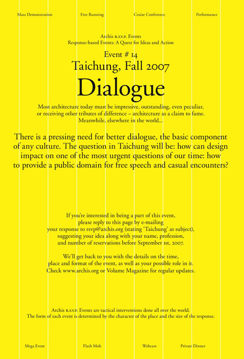 Ole Bouman: Agitation is, of course, a very general category. It’s also a cultural term that has strong political connotations. In terms of Volume, as a way of approaching architecture, I think it’s good to cover that theme, to explore agitation in the present state of affairs, and to challenge the accepted formats, the accepted language, the accepted procedures in architecture. It’s a way to expand the architectural imagination in a way.