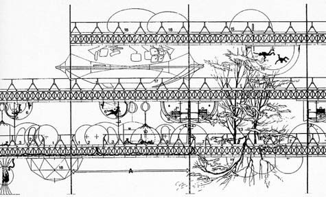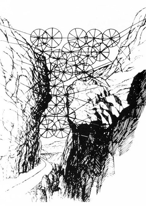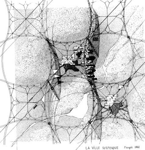 The entire metropolis would be hung from cables, a kind of tensional extension of the earth’s surface.
