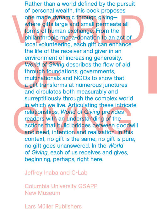 This summer, while leaving New York City to return to Los Angeles, and on the occasion of Inaba publishing his recent book World of Giving, with Katharine Meagher, and editing the 24th issue of Volume—to be released next week at an event in New York—I decided to catch up with him about those two publications, about the state of architectural criticism in an age when everyone is being, as Inaba says, “nice,” and about the philanthropic potentials of design today.