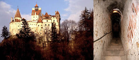 [Images: (top) Bran Castle, (bottom) Hunyad Castle, all via Wikipedia].