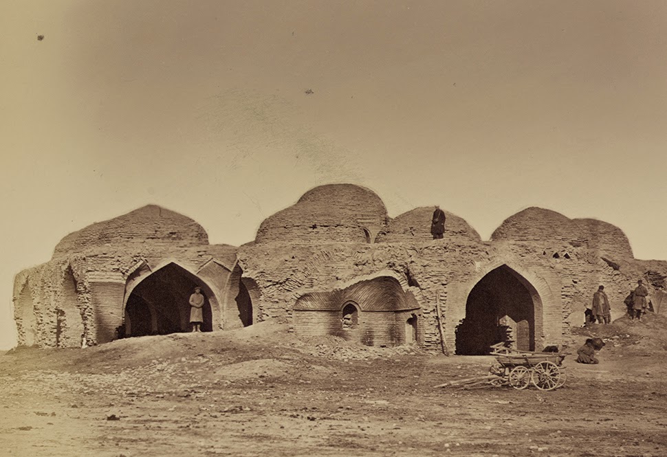 The first shot—depicting the “ruins of the Mulushki Mirza Rabat near Khodzhend,” as the Library of Congress explains it—establishes something of a theme here: works of architecture built from modules of fired clay, their wind-pocked brickwork extracted from the hills around them and transformed by kilns into something artificial, “manmade,” now more artifact than natural object.