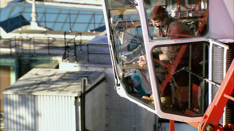 These are intercut with the film’s only speaking sections, where we watch architect Michele De Lucchi supervise the construction of a small rock circle in his garden. A light snow falls and hazy mountains are visible in the background. The scenes are meditative and calming.