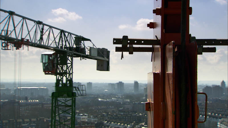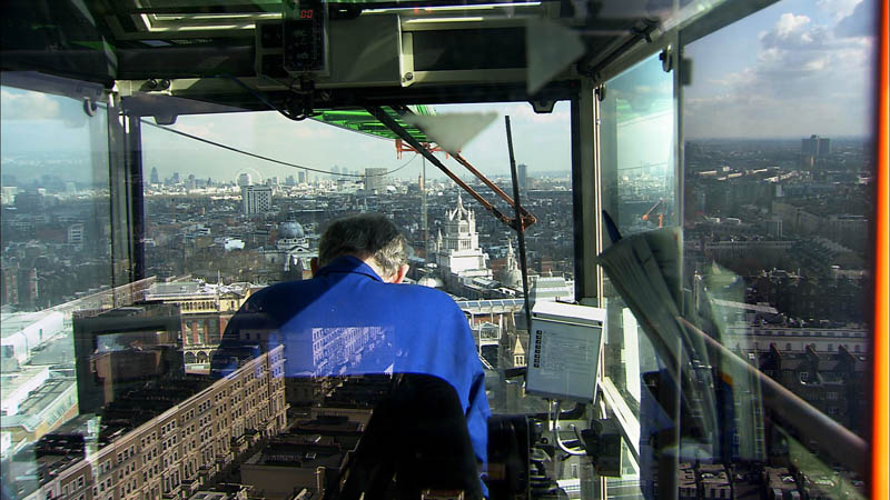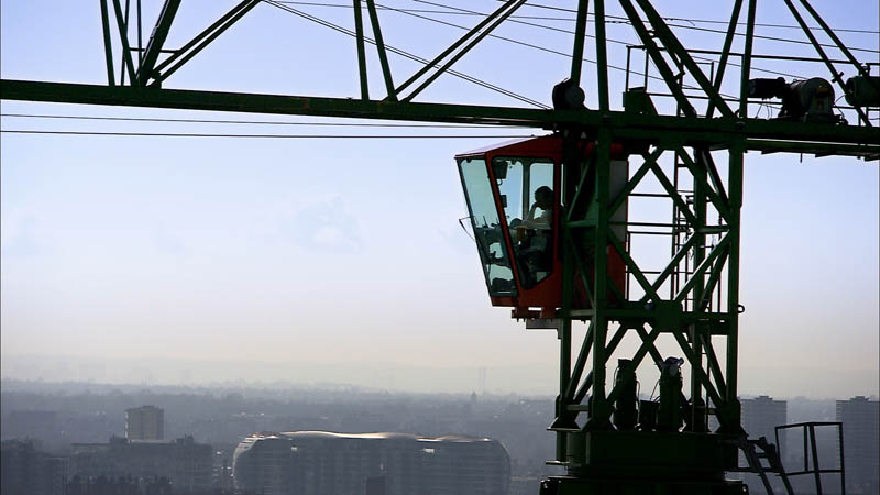 But the movie takes a more architectural turn here, increasingly focused on buildings and cities, on archaeological sites and ruins. We see residential towers in Ukraine, for example, ripped open by Russian missiles and drone-bombs, and then earthquake-damaged apartments undergoing demolition and clearance, followed by landfill-dumping operations so large they look like attempts at terraforming.