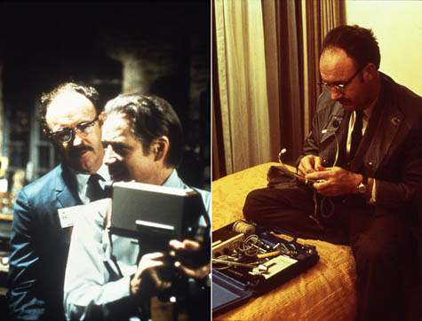 [Image: Harry Caul (Gene Hackman) gets to know his surveillance equipment; from The Conversation. Courtesy of American Zoetrope].