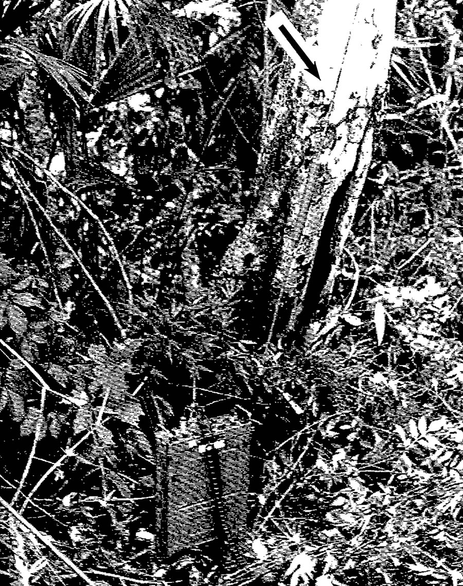 [Image: A tree in the Panamanian rain forest wired up as a sending-receiving antenna; from IEEE Transactions on Antennas and Propagation (January 1975)].