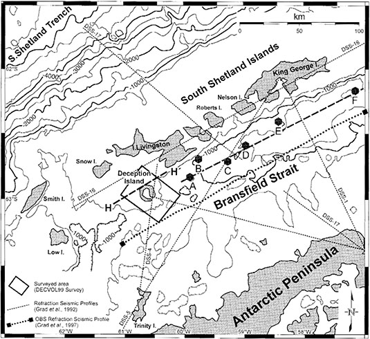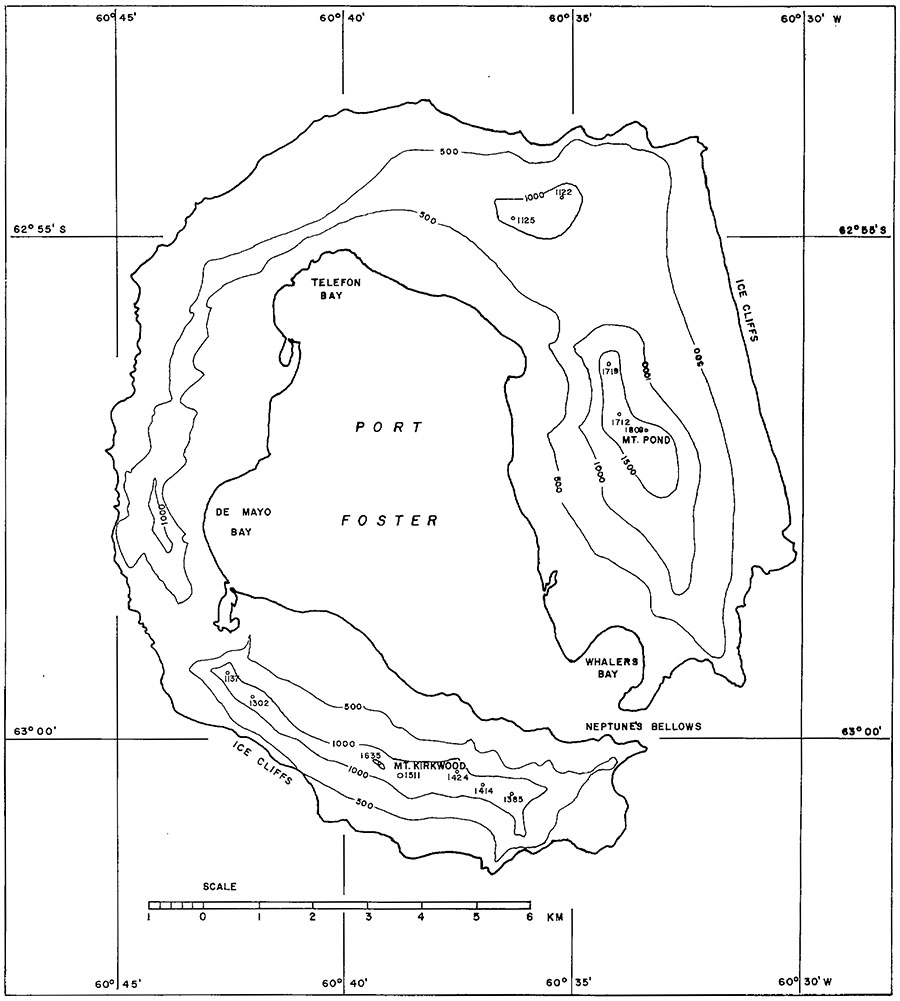 [Image: Deception Island, from “Upper crustal structure of Deception Island area (Bransfield Strait, Antarctica) from gravity and magnetic modelling,” Antarctic Science (2005)].