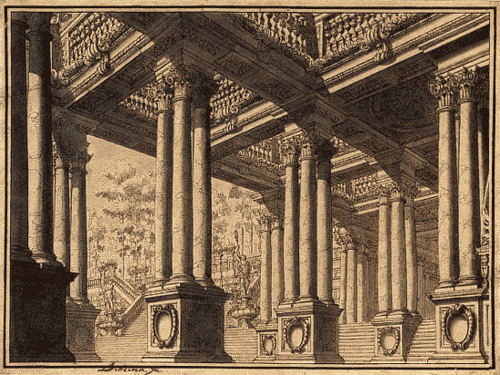 If Fernando Galli Bibiena, famed scenographer, designer extraordinaire of endless, receding, Baroque pillared symmetries, with trick halls and mirage-like backdrops—