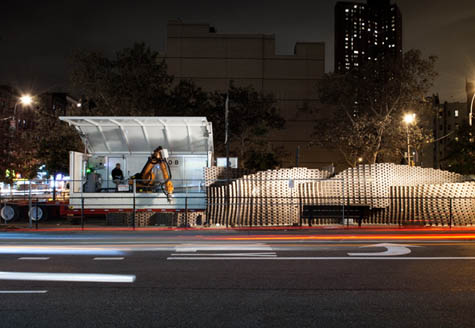 —Gramazio & Kohler’s Mobile Fabrication Unit will arrive soon at New York’s Storefront for Art and Architecture. Between October 5 and October 27, it will be busy assembling “the first temporary public installation to be built on site by an industrial robot in New York.” Then, however, on Halloween, it will become possessed by incomprehensible forces from the Precambrian depths of the city, and, in a horrifying night of thunderous brickwork, it will wall off the island of Manhattan forever…